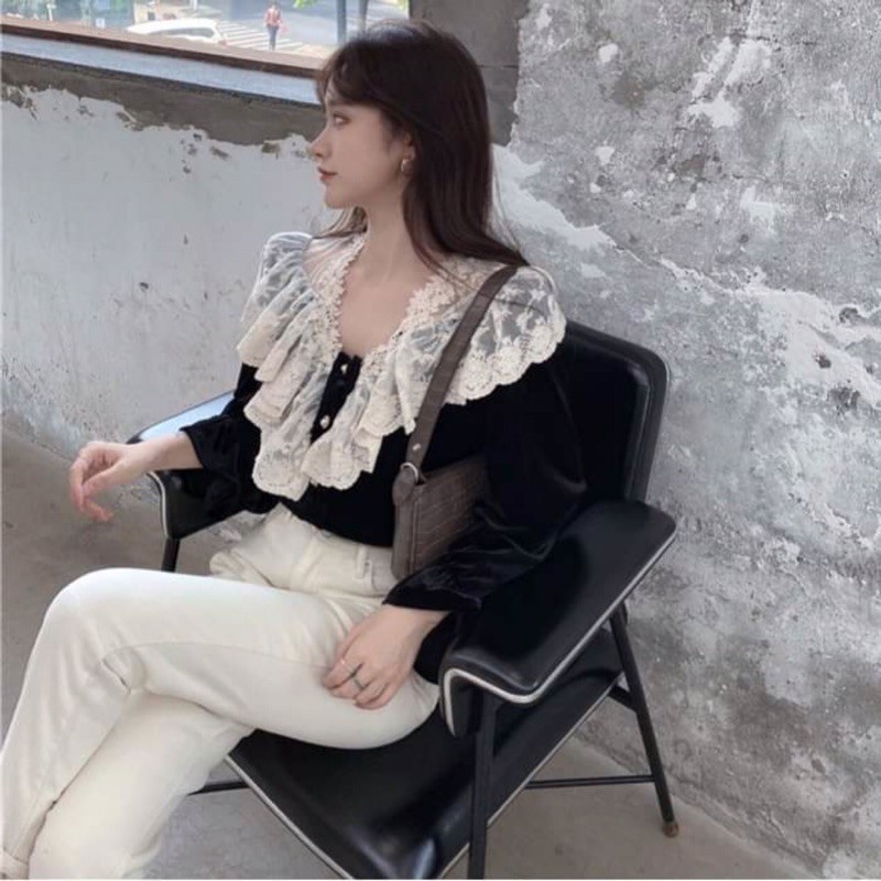 Áo Sơ Mi Tay Dài Phồng Cổ Thủy Thủ Phong Cách Hàn Quốc Thiết Kế Mới Mùa Thu Đông Cho Nữ