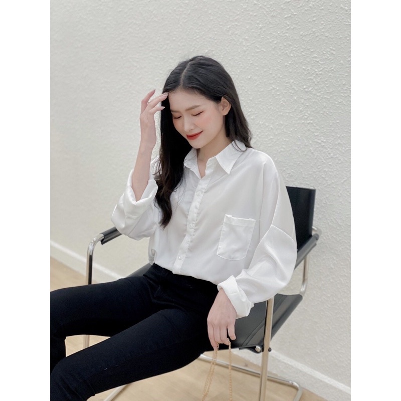 Áo sơ mi trắng basic túi ngực dáng rộng Lumii