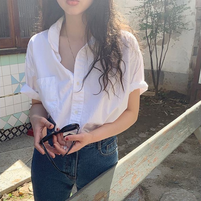 Áo Sơ Mi Trắng Tay Ngắn Phong Cách Hàn Quốc Thiết Kế Mới Cho Nữ