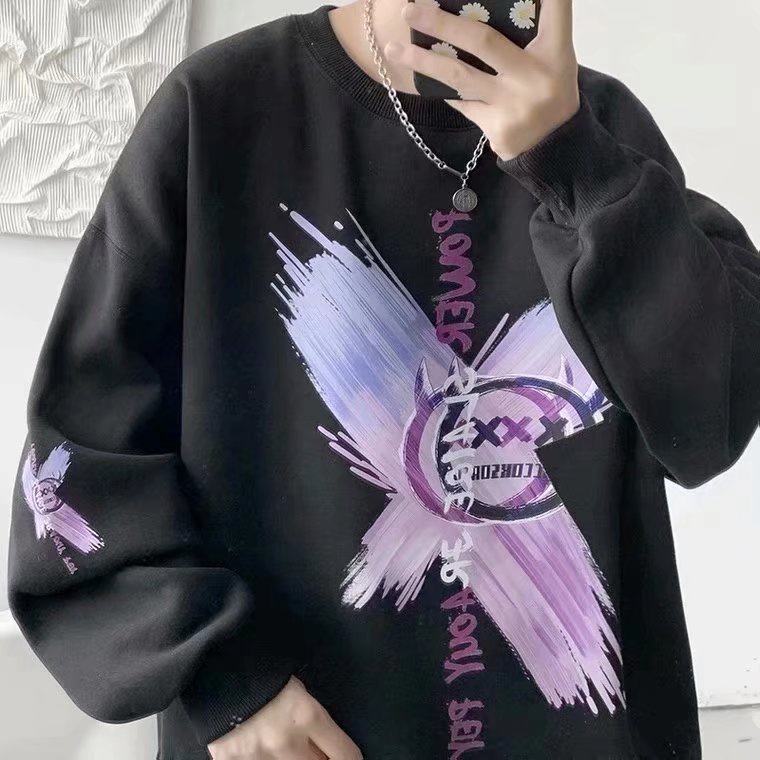 Áo sweater cổ tròn dáng rộng in họa tiết Graffiti phong cách hàn quốc thời trang cho nam