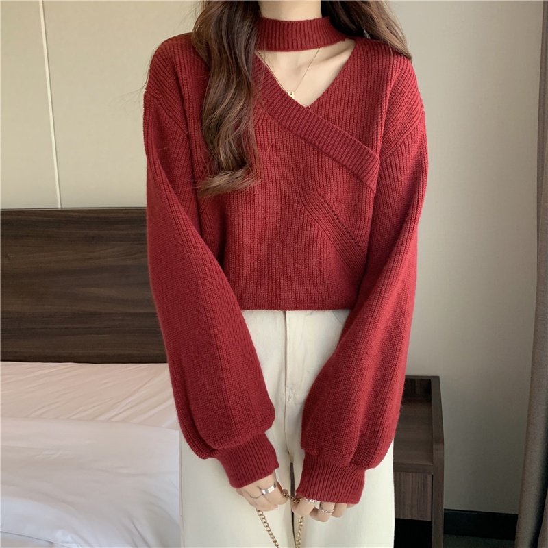 Áo sweater Dệt Kim Tay Phồng Cổ Chữ V Thời Trang Thu Đông Mới 2022