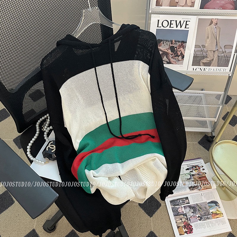 Áo sweater JSC có mũ trùm đầu dáng rộng phối màu tương phản phong cách Mỹ cổ điển thời trang mùa thu 2023 cho nữ