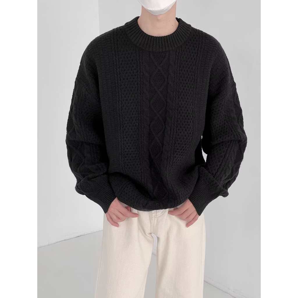 Áo sweater nam dệt kim cổ tròn dáng rộng màu sắc đơn giản lựa chọn phong cách Hàn Quốc nhật bản áo sweater form rộng unisex áo sweater trơn simple cotton áo len nam dài tay bigsize