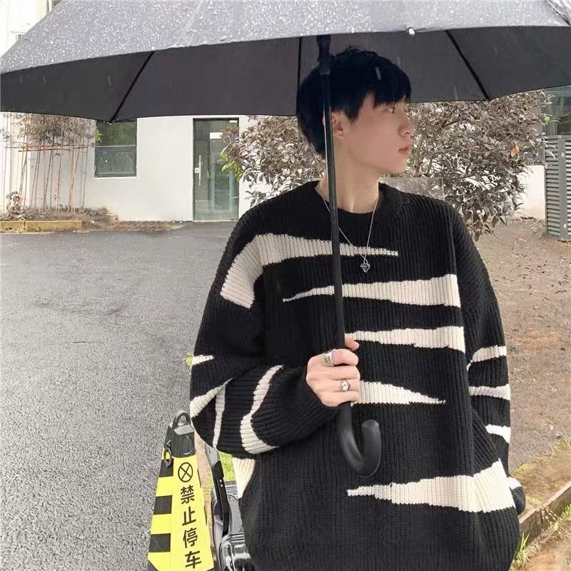 Áo sweater tay dài cổ tròn họa tiết kẻ sọc phong cách retro hàn quốc dành cho nam