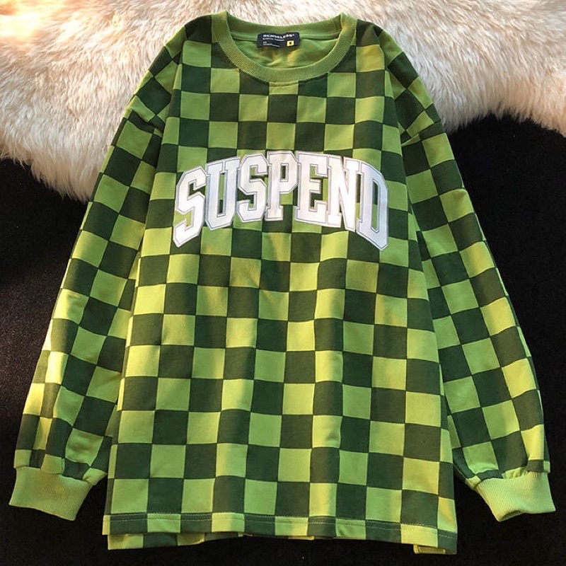 Áo Sweater Tay Dài Dáng Rộng Kẻ Sọc Caro Thời Trang Mỹ Cổ Điển Cá Tính Cho Nữ