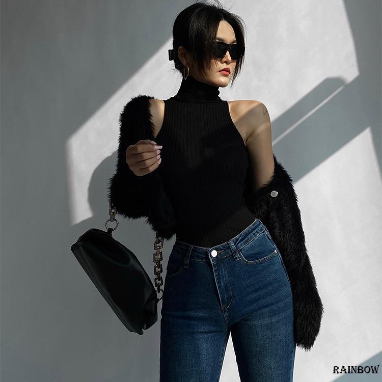 Áo Tanktop Cổ Cao Không Tay Màu Sắc Cầu Vồng Thời Trang Dành Cho Nữ