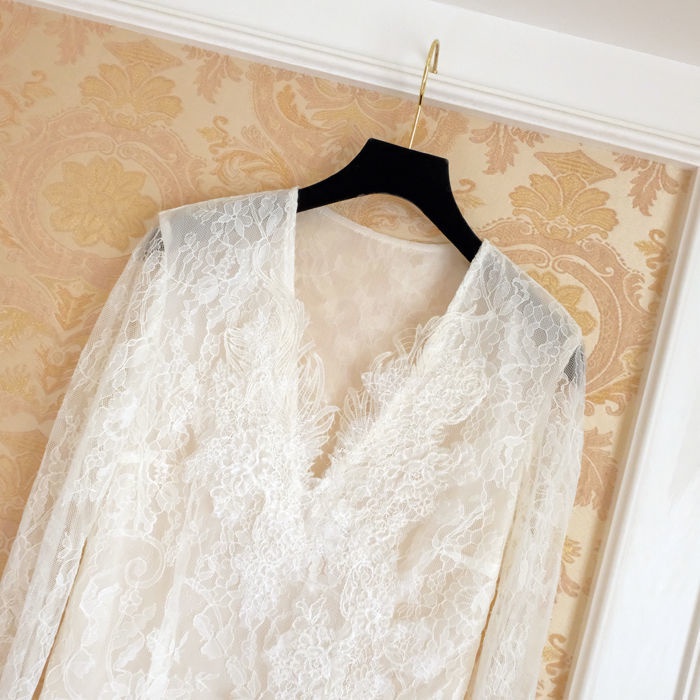 Áo Tay Dài Cổ Chữ v Phối Ren Thiết Kế Mới Quyến Rũ Thời Trang Dành Cho Nữ 2022