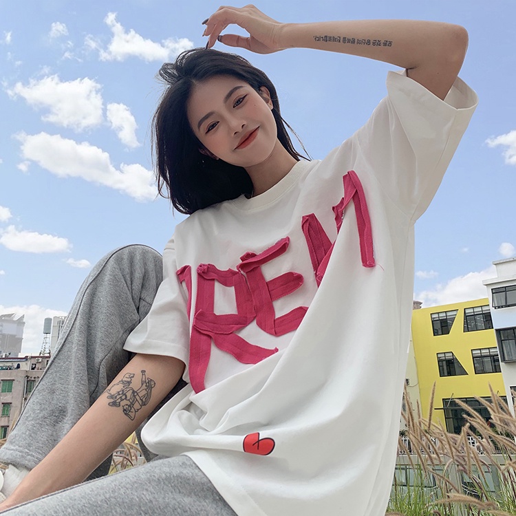 Áo Thun Baby Tee Tay Ngắn Dáng Rộng In Chữ Phong Cách Hàn Quốc Mới
