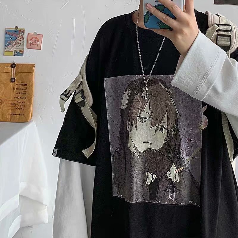 Áo Thun Tay Lửng Cổ Tròn Dáng Rộng Phong Cách Thời Trang Harajuku Nhật Bản