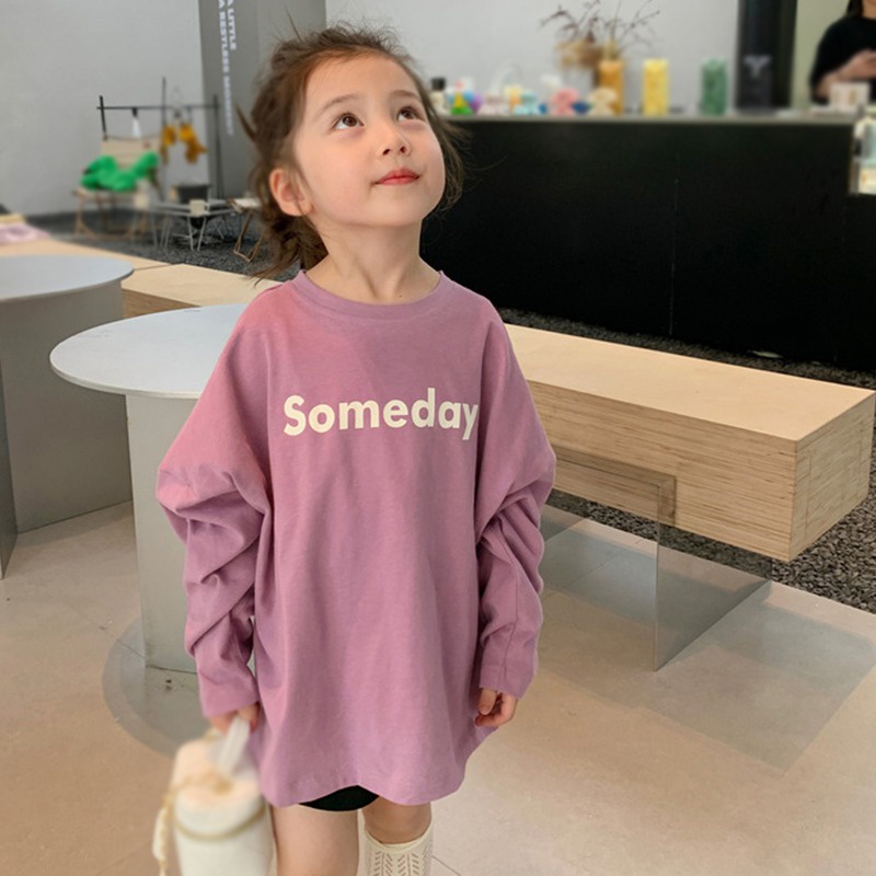 Áo Thun Cổ Tròn In Chữ Phong Cách Hàn Quốc Thời Trang Mùa Thu Mới Cho Bé Gái
