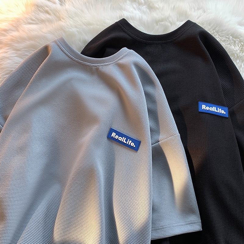 Áo Thun Chất Tổ Ong Ngắn Tay Dáng Rộng oversize Thời Tran Dành Logo Xanh Ngực