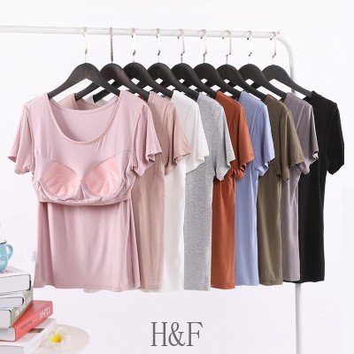 Áo Thun Cotton 2 Trong 1 Tay Ngắn Có Mút Đệm Ngực Có Size M-3XL