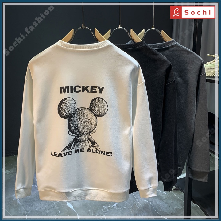 Áo Thun Dài Tay Nỉ Bông Họa Tiết Mickey Phối Tay Dáng Rộng Giấu Quần Trùm Mông Freesize
