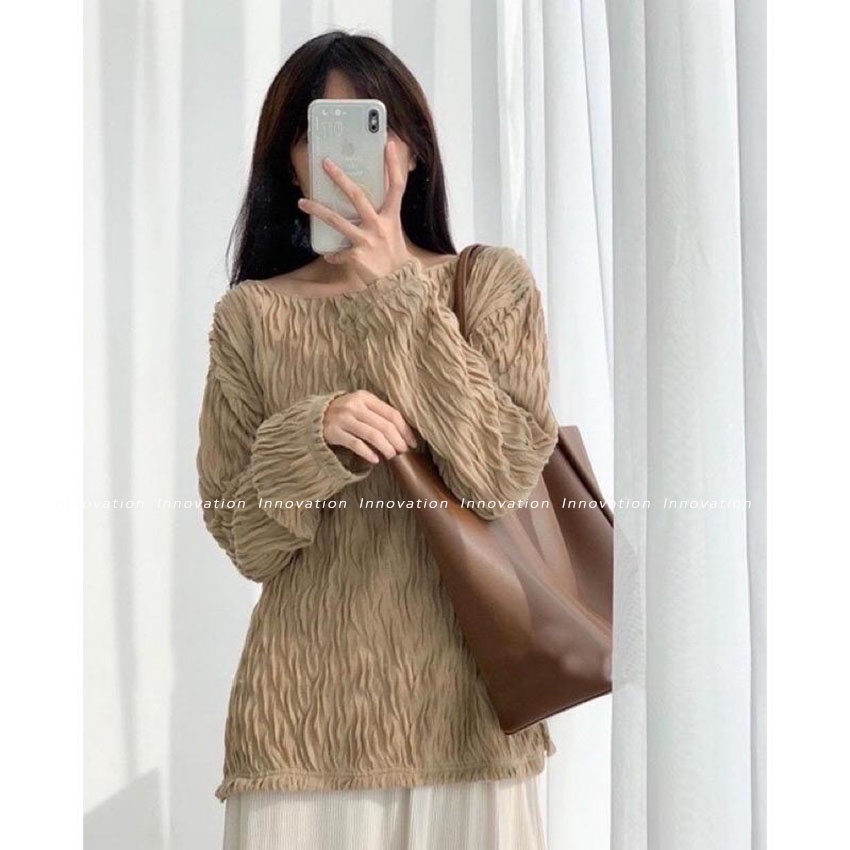 Áo Thun Gân Sóng Dài Tay Vải Mềm Form Rộng Cổ Tròn TA-003