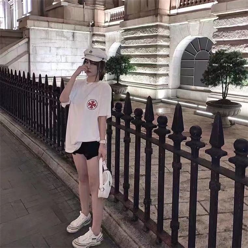 Áo Thun Mềm Tay Ngắn In Chữ Thập Đỏ Chrome Hearts Round Cross Sanskrit Chất Lượng Cao Thoải Mái Cho Cặp Đôi
