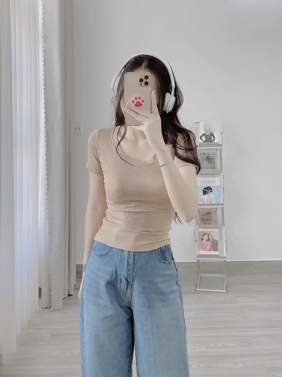 Áo Thun Nữ, Áo Kiểu Nữ Cổ Chữ U, Tay Ngắn, Vải Gân THÁI Co Giãn Tốt, Ôm Body Mẫu mới mềm mịn mát, phối đồ siêu xinh, đi cafe, đi chơi đều xinh