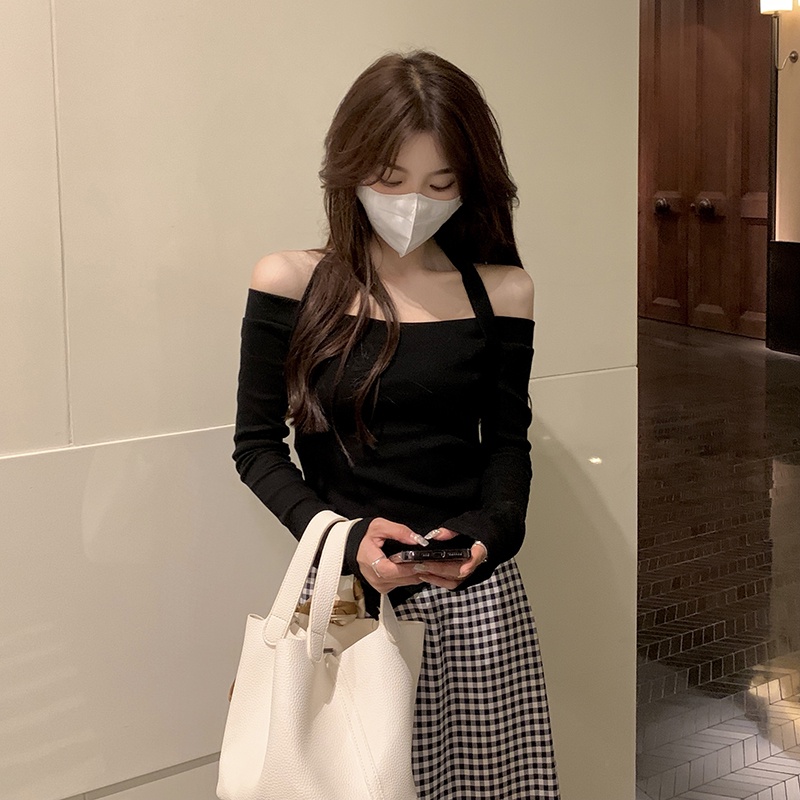 Áo thun nữ dáng ôm dài tay 2021, áo hở vai kiểu hotgirl ngọt ngào chất nỉ thời trang hàn quốc