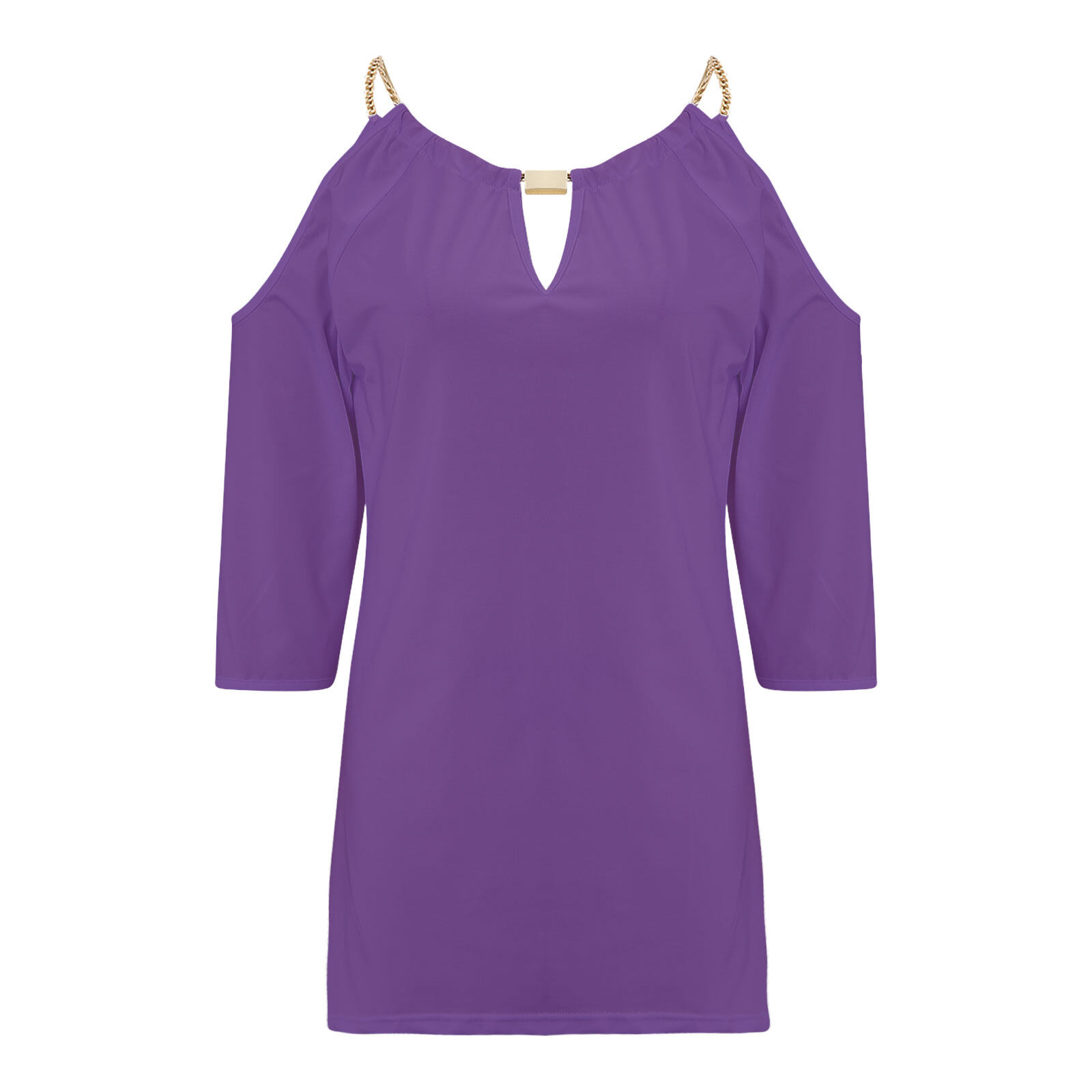 Áo thun nữ tay áo lửng giản dị áo Áo chui đầu cổ chữ V trễ vai màu trơn thời trang