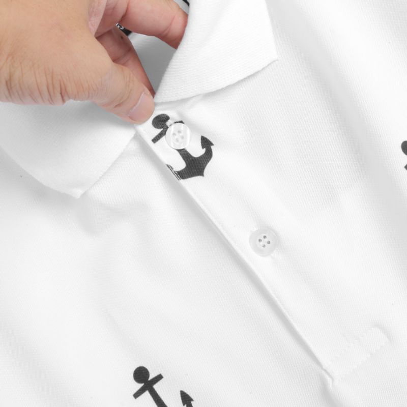Áo thun nam cổ bẻ ngắn tay polo thun cá sấu poly 4 chiều mỏ neo