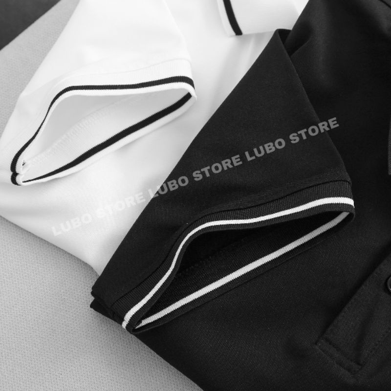 Áo thun nam nữ polo cổ trụ cotton tay ngắn phối sọc 2 màu Trắng/Đen