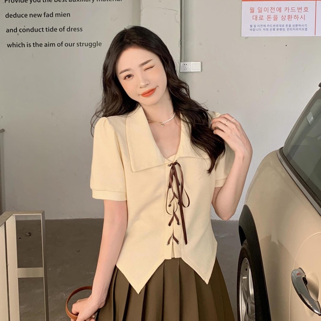 Áo thun ngắn thời trang Polo cổ áo thiết kế mỏng Nữ tay ngắn JH-TX-28