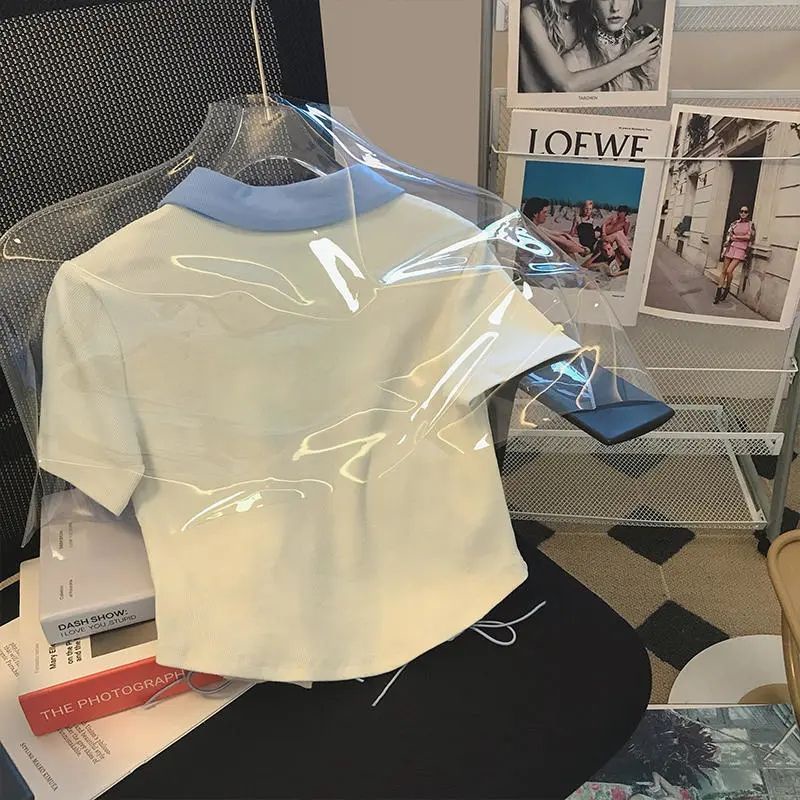 Áo thun ZHELIHANGFEI dệt kim cổ polo tay ngắn thời trang trẻ trung cá tính cho nữ