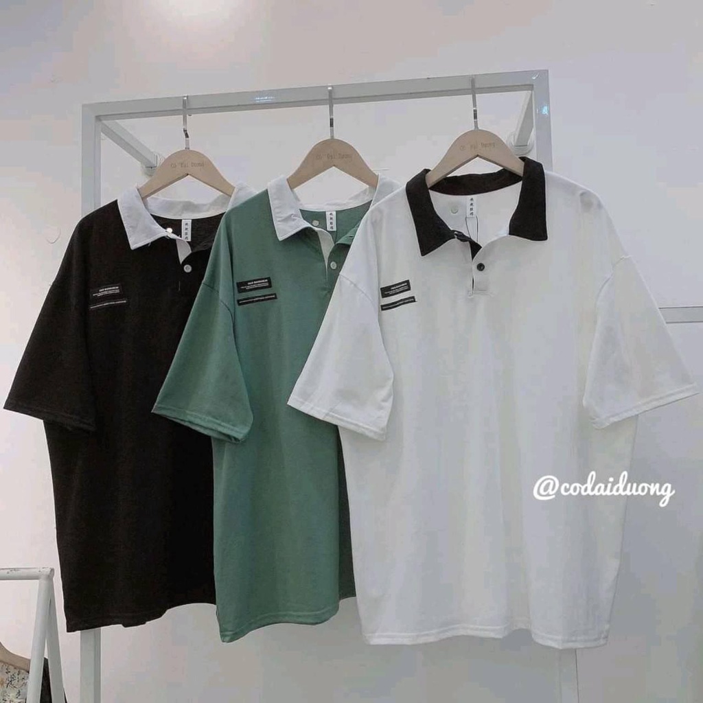 Áo Polo Trơn Tay Lỡ Unisex Form Rộng Cotton Hàn Dày Dặn,Áo Thun Có Cổ 3 Cúc Nam Nữ Phong Cách