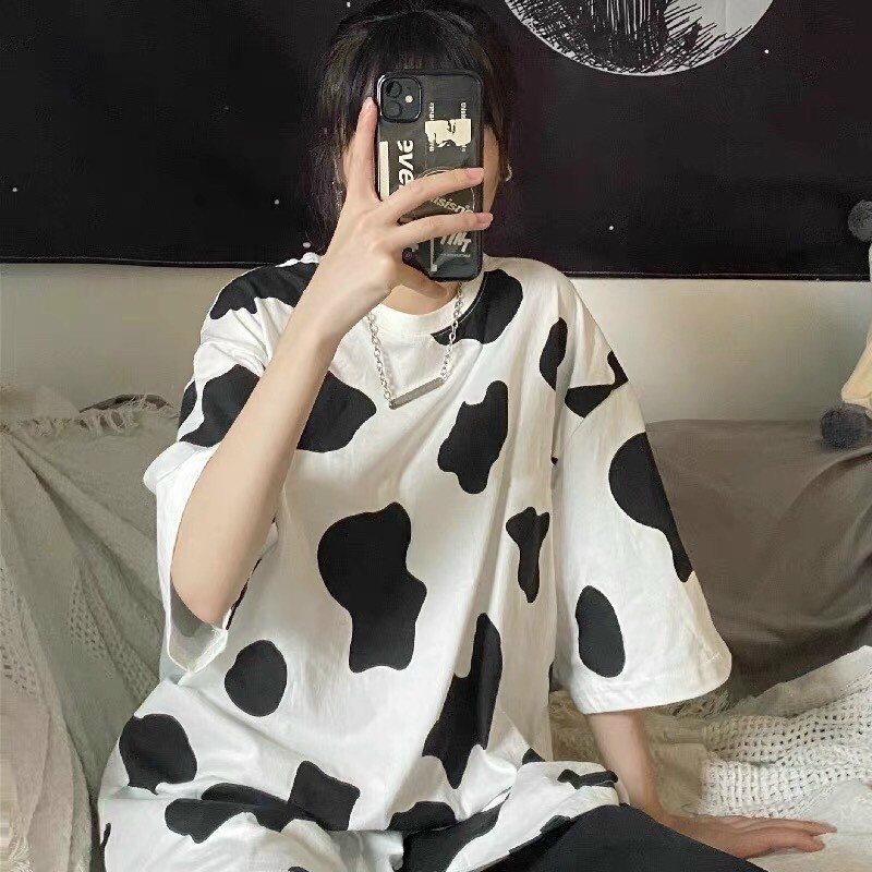 Set bộ áo thun tay lỡ BÒ SỮA đen cute trẻ trung năng động vải mềm mát Nhungkudostore