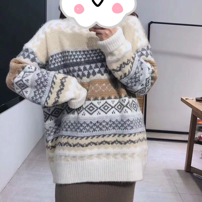 Áo Thun Tay Dài Cổ Tròn Dáng Rộng Màu Sắc Tương Phản Thời Trang Hàn Quốc Cho Nữ