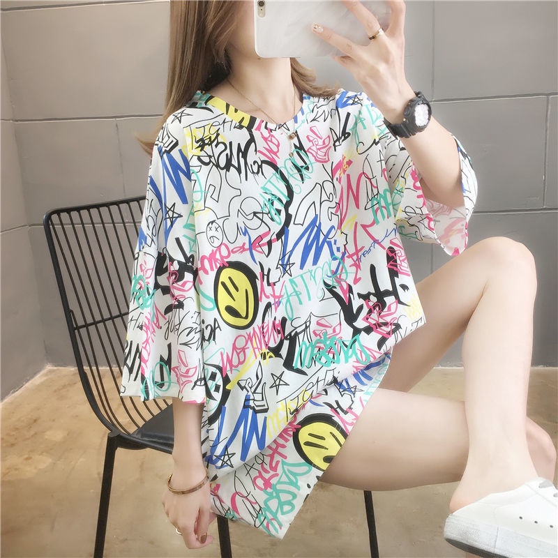 Áo Thun Tay Lỡ Dáng Rộng Cổ Tròn In Họa Tiết Hoạt Hình Dễ Thương Thời Trang Cho Nữ C8135 40-150KG