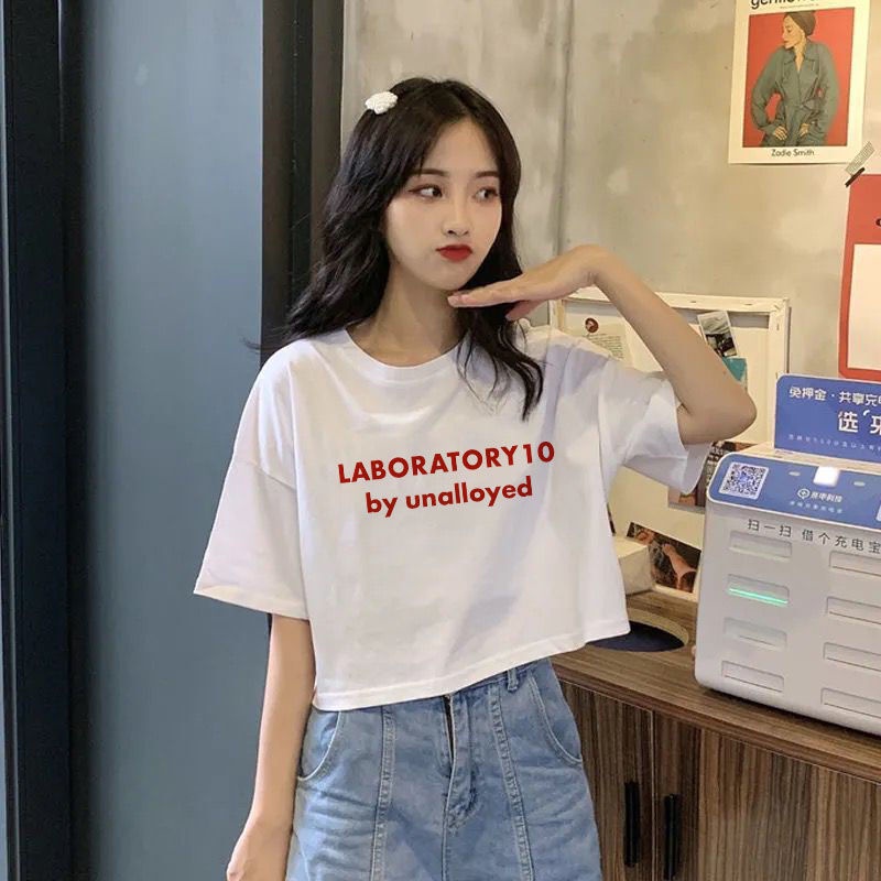 Áo thun tay lỡ dáng rộng lưng cao thời trang mùa hè cho nữ tùy chọn họa tiết