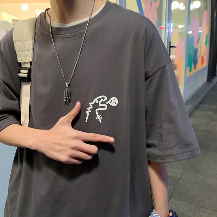 Áo Thun Tay Ngắn Cổ Tròn Dáng Rộng Phong Cách Hàn Quốc Thời Trang Cho Nam