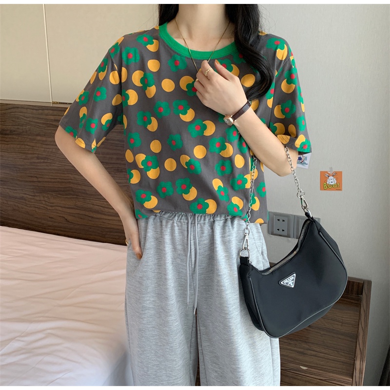 Áo Thun Tay Ngắn Dáng Rộng In Họa Tiết Đơn Giản Phong Cách Hàn Quốc Thời Trang Xuân Hè 2022 Mới Cho Nữ