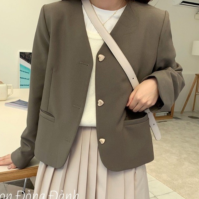 Áo vest blazer nữ không cổ dài tay cúc trái tim Hàn Quốc Mã FL giảm 20k AO019 ảnh thật
