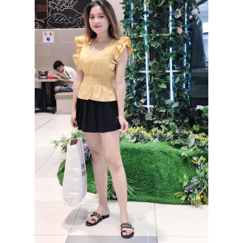 Áo Voan Kiểu Cổ Tim Phối Tay Kiểu Cánh Tiên Kêt Hợp Bo Eo Kèm Thắc Nơ Lưng Nữ Tính TTS0742