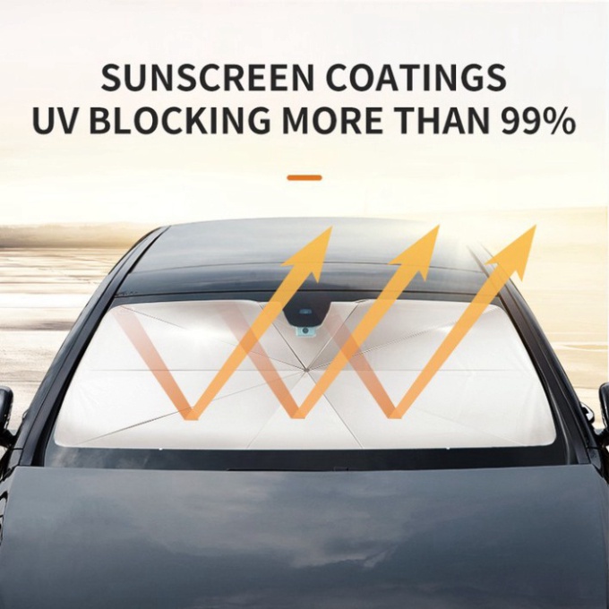 Ô che nắng, kiêm chắn nắng kính lái ô tô đa năng cao cấp 2 trong 1. Chống nắng nóng và tia UV - Bảo vệ khỏi ánh nắng mặt trời: Chiếc ô che nắng chất lượng cao không chỉ bảo vệ chặn ánh sáng mặt trời một cách hoàn hảo mà còn giúp bảng điều khiển và vải bọc không bị ph
