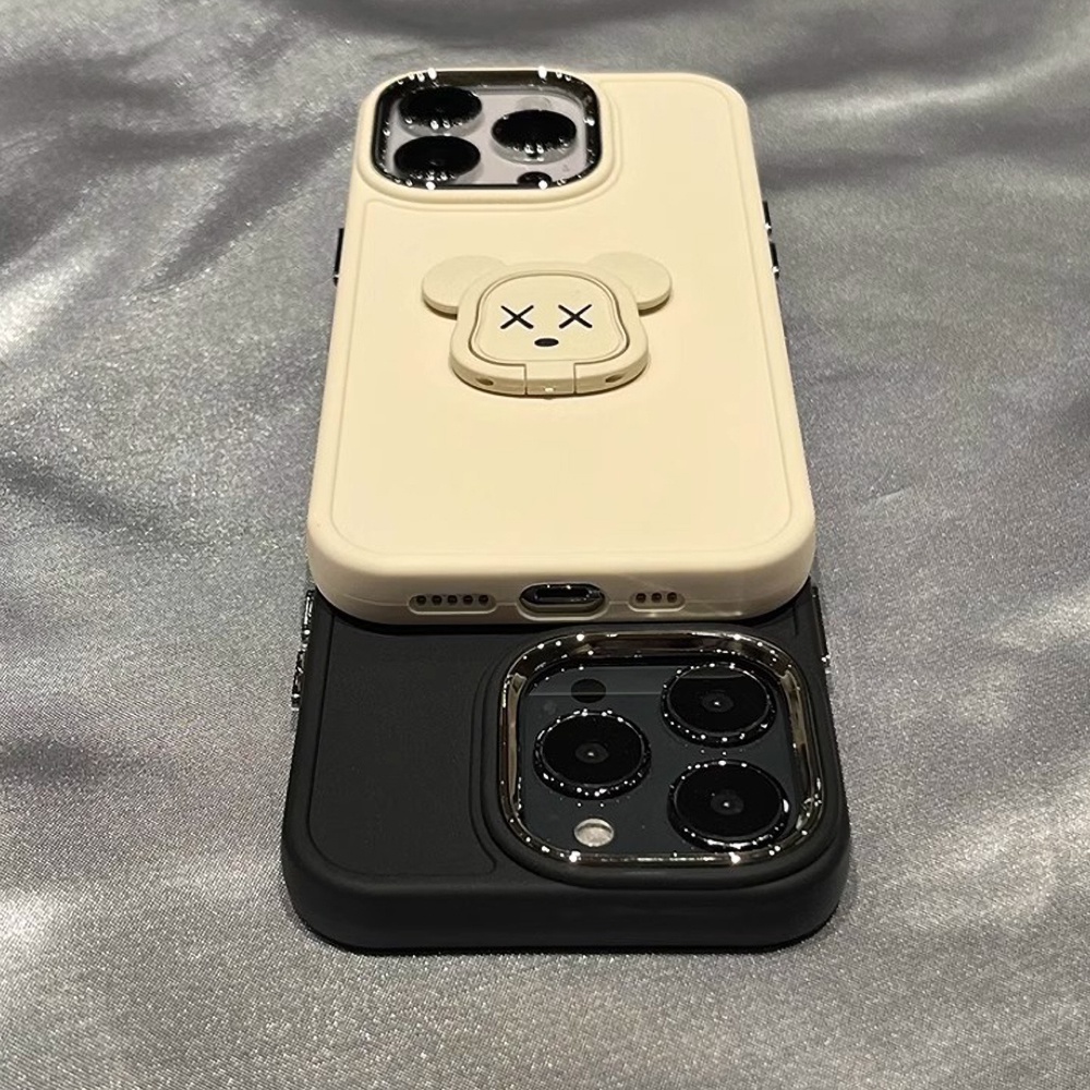 Ôp Điện Thoại Silicon Dẻo Họa Tiết Hoạt Hình kaws Kèm Giá Đỡ Kim Loại Cho iphone 15 pro max 14 11 12 13 pro max Ốp