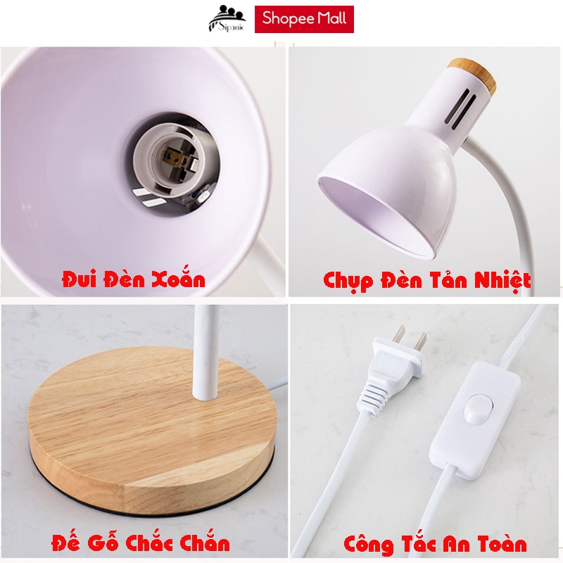 Đèn bàn học, SIPANIC đế gỗ dùng bóng LED BULB Rạng Đông bảo vệ mắt chống cận