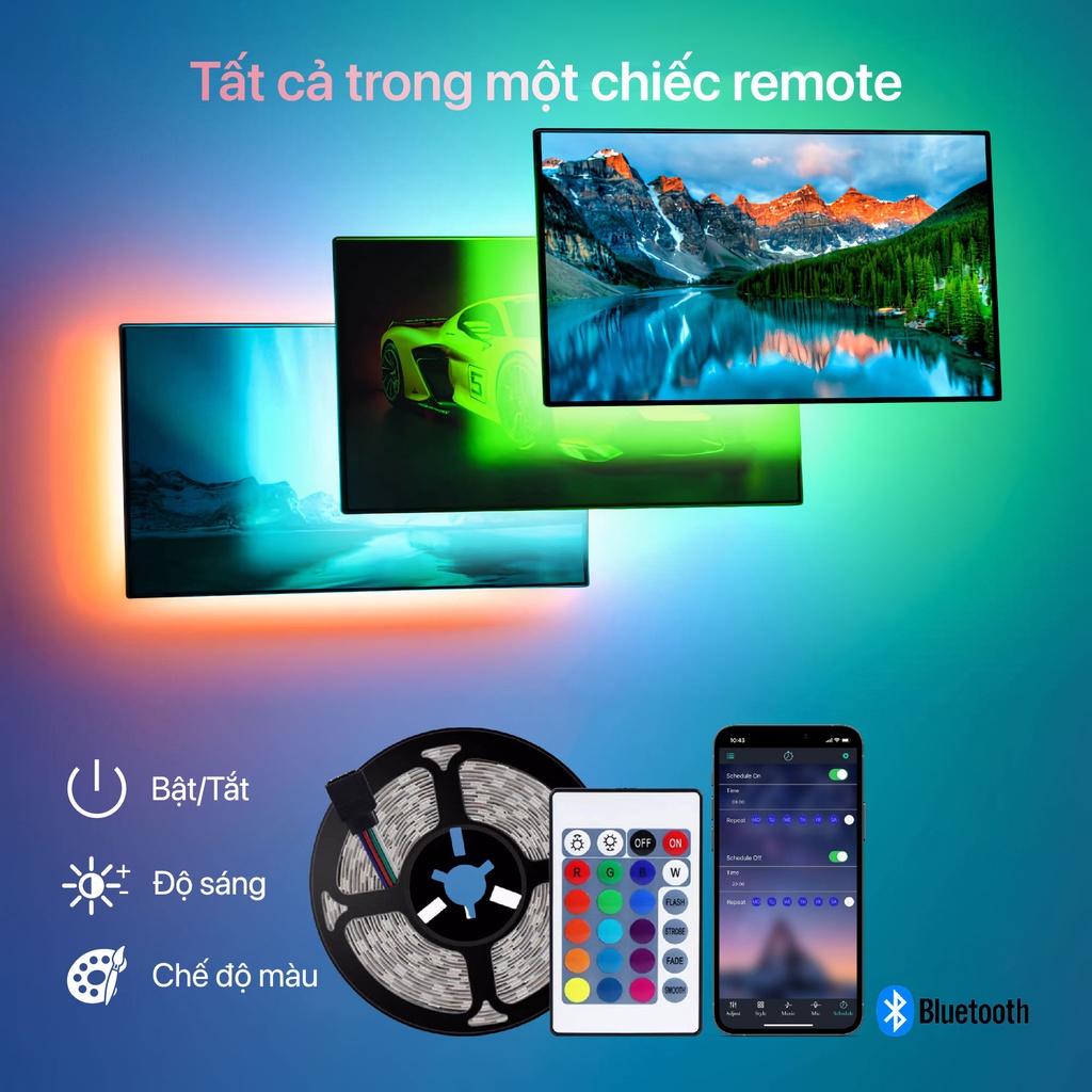 Đèn Dây LED RGB Đa Màu Kết Nối Bluetooth Nhiều Màu Điều Khiển Bằng Remote và App Điện Thoại