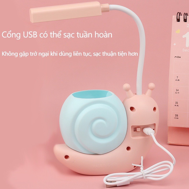 Đèn Học Để Bàn Nhỏ Gọn Chông Mỏi Mắt Đèn Bàn Chống Cận Hình Ốc Sên Siêu Đáng Yêu - Đèn bạn học tích điện hình chú sên đáng yêu giúp cải thiện đủ độ sáng cho con em, đồng thời là vật decor cho không gian làm việc và học tập - Với họa tiết hình ốc sên vô cùng xinh xắn