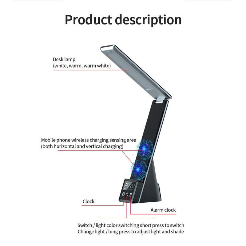 Đèn học sinh để bàn Led bảo vệ mắt chống cận kiêm sạc không dây và đồng hồ