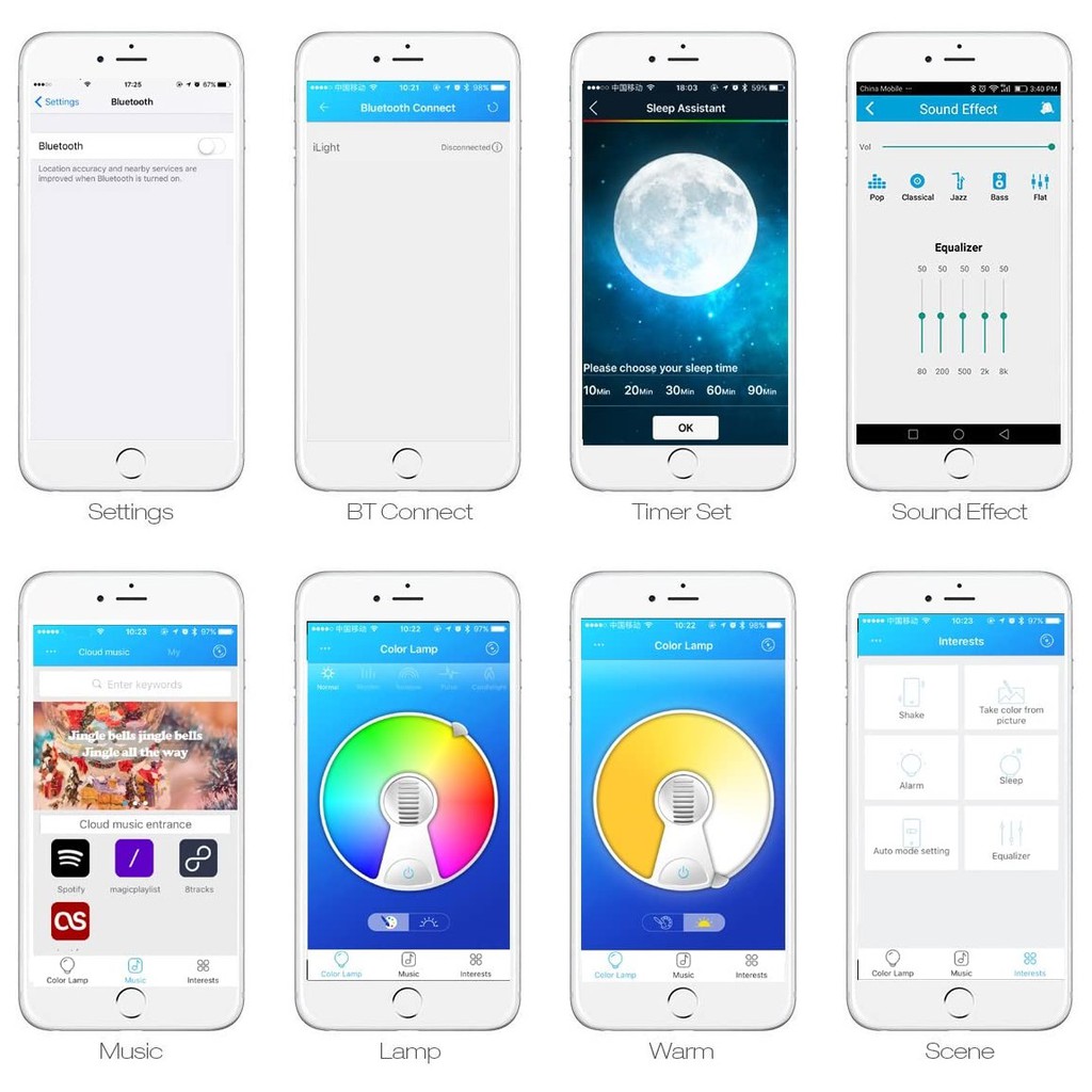 - Kết nối: Bluetooth 4.0 - Loại loa: Loa ốp trần - Kênh: 2 (2.0) - Nguồn điện: 220v - Công suất: 2 loại 36 W và 72 W - Chức năng: Nghe nhạc, chiếu sáng - App trên điện thoại: i-link - Ánh sáng: 6000K (Ánh sáng trắng),3000K (Trắng ấm) - Phạm vi chiếu sáng: 10 ㎡-15 ㎡ -