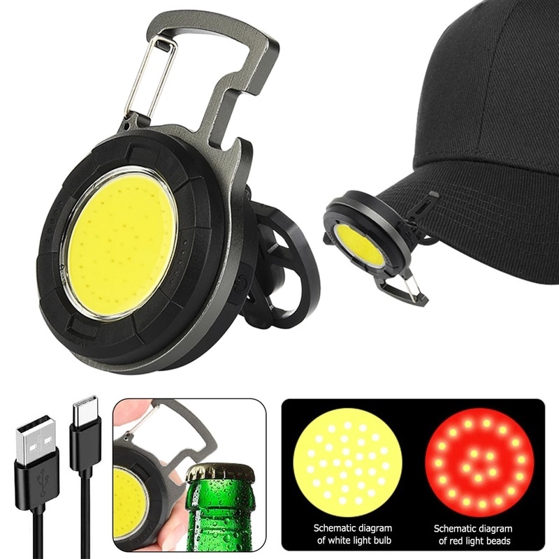 Móc chìa khoá đèn pin LED COB mini tích hợp mở bia, chống nước, dùng pin sạc, có nam châm đính kèm
