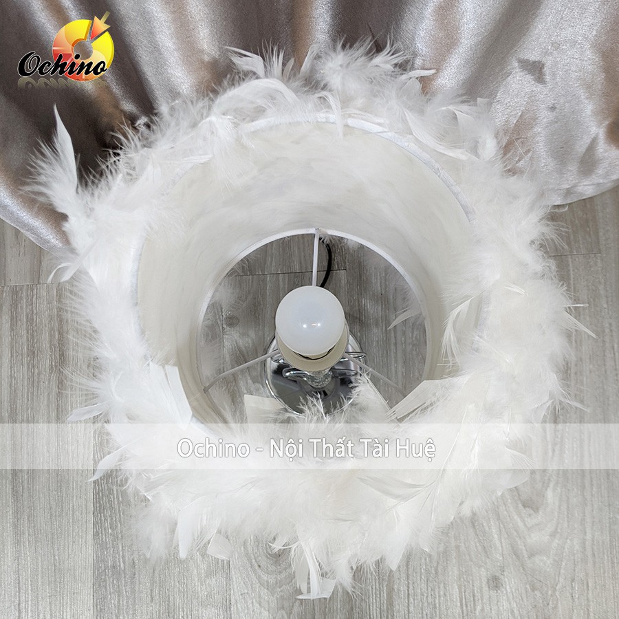 Đèn Ngủ Để Bàn, Đèn Bàn Cao Cấp Nón Lông Vũ Cực Đẹp Hình Trái Tim Sang Chảnh Loại Lồng To Đẹp