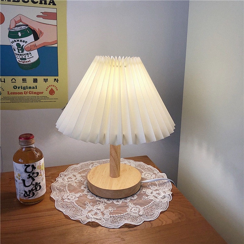 Đèn ngủ để bàn xếp ly nhỏ nhắn ✔️Chất liêu: Đế đèn làm bằng gỗ cao cấp đặc biệt, chao đèn bằng vải nhựa dễ dàng lau chùi. ✔️Kích thước sản phẩm: - chiều cao khoảng 27cm * đường kính khoảng 24cm ✔️Dây dẫn điện: dài 1,8m ✔️Màu sắc: trắng sữa ✔️Phong cách: đơn giả