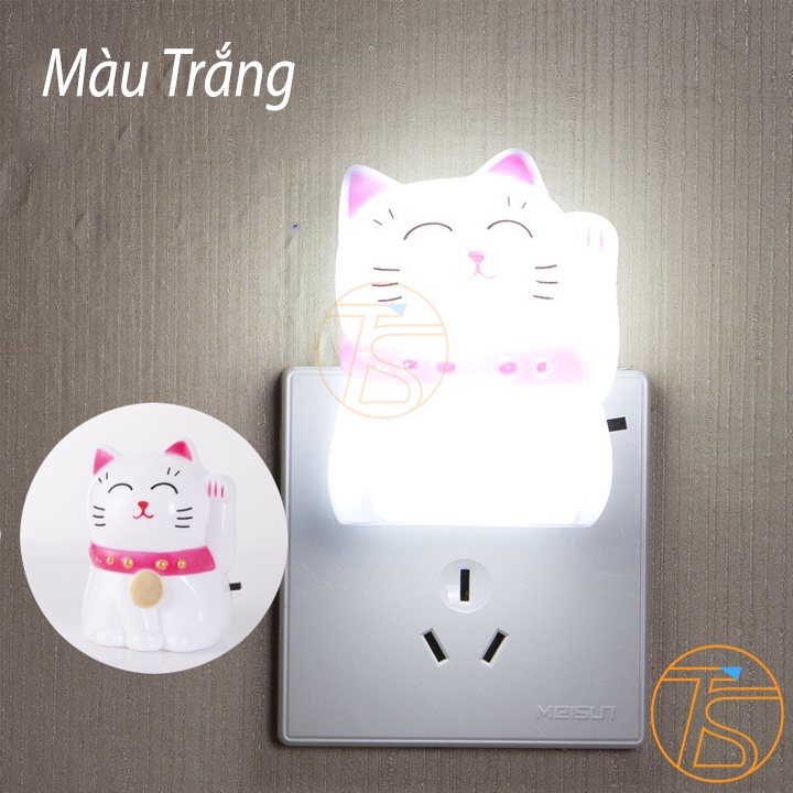 Đèn Ngủ Trang Trí Mèo Thần Tài Vẫy Tay Dễ Thương 3 Màu Cắm Điện Bóng Led - Đèn Ngủ Treo Tường