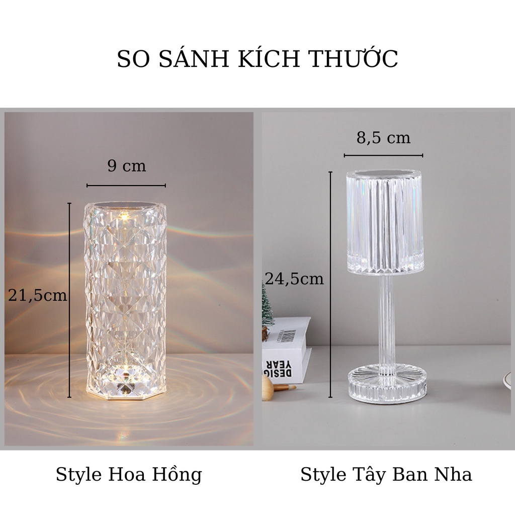 Đèn Bàn Kim Cương Đèn Ngủ Pha Lê Để Bàn Hiệu Ứng 3D Cảm Biến Tích Điện