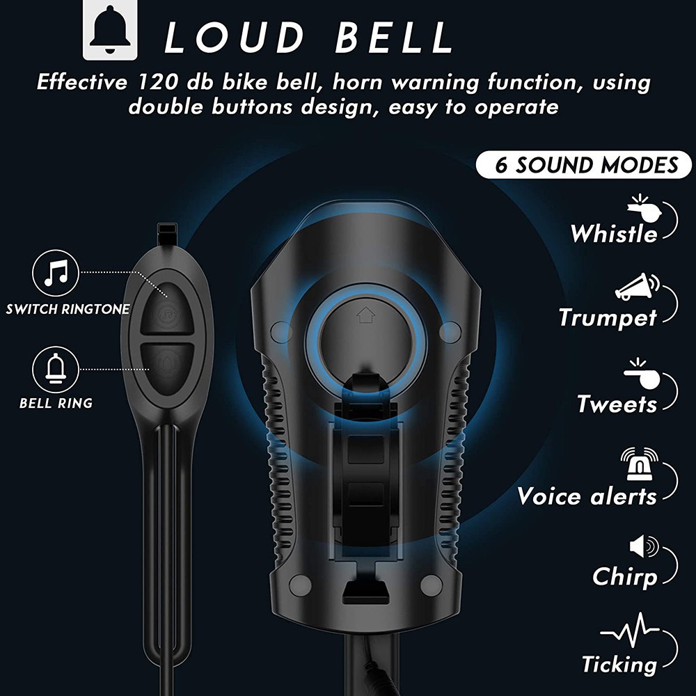 Đèn Pha LED Tích Hợp Còi Sạc Usb Chống Thấm Nước Tiện Dụng Cho Xe Đạp