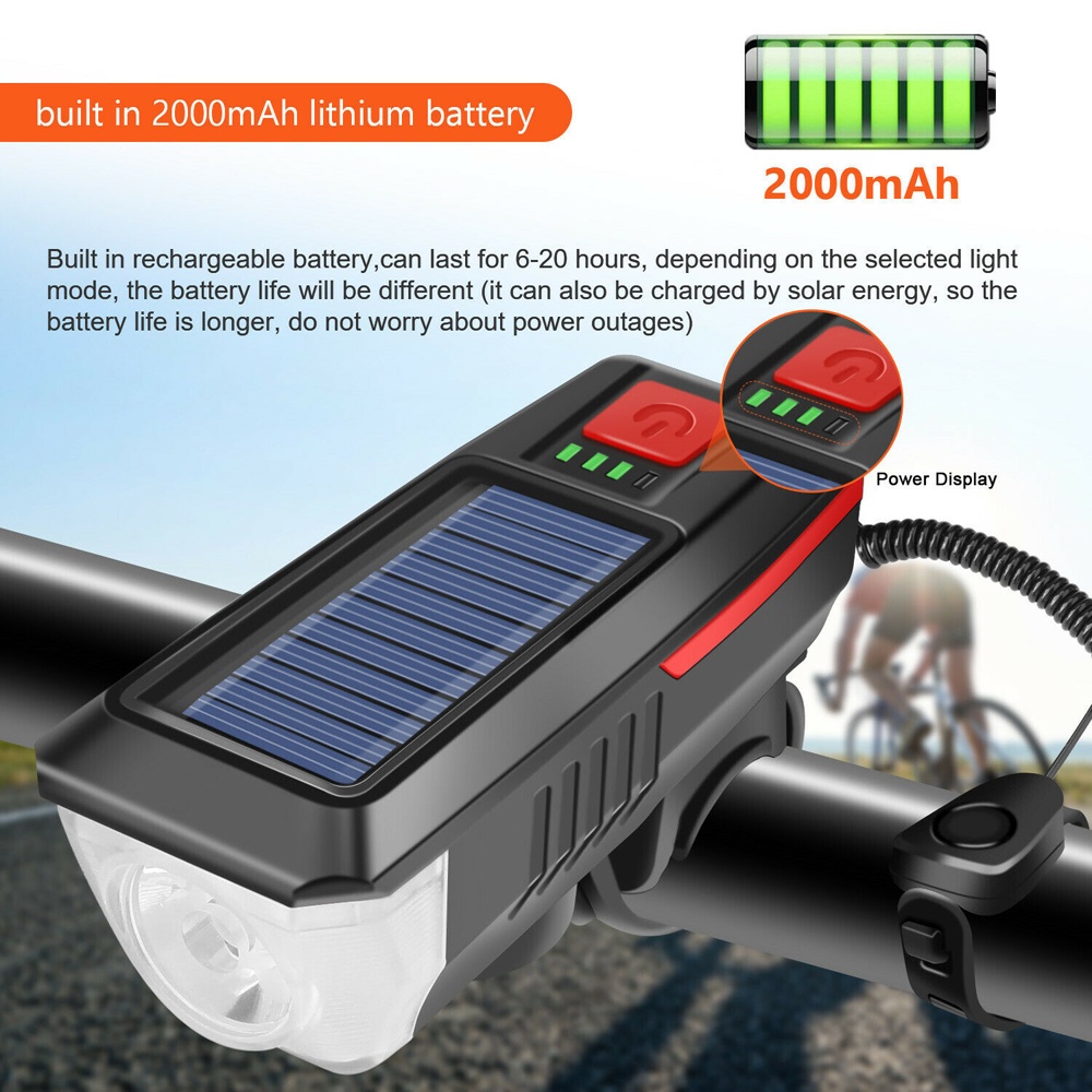 Đèn Pha T6 Led Sạc Usb Có Còi Gắn Xe Đạp Leo Núi Sử Dụng Năng Lượng Mặt Trời 3 Chế Độ