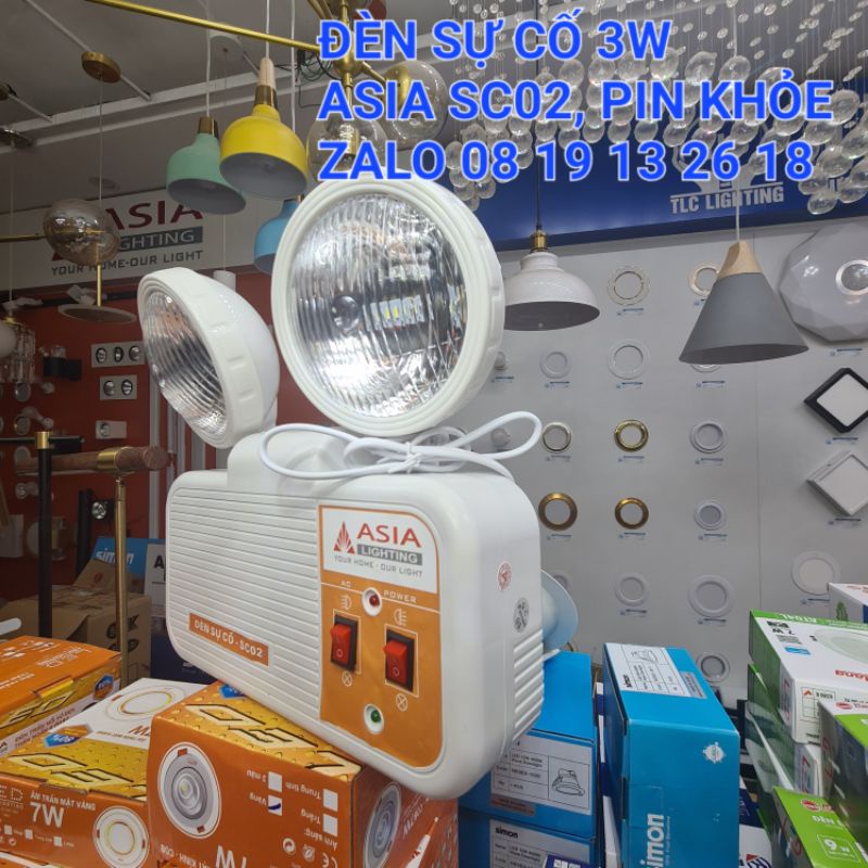 Đèn Sự Cố Asia SC01, SC02. Đèn khẩn cấp, Pin khỏe, tự động sáng khi có sự cố, đèn chỉ dẫn, bảo hành 2 năm.